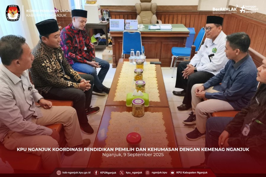KPU Nganjuk- Program sosialisasi pendidikan pemilih pemula untuk pelajar di madrasah dari Komisi Pemilihan Umum (KPU) Kabupaten Nganjuk disambut baik oleh Kementerian Agama (Kemenag) setempat. Hal ini terungkap dalam silaturahim dan koordinasi pimpinan KPU Nganjuk dengan Kepala Kemenag Kabupaten Nganjuk, Selasa (9/9/2025). Dalam pertemuan yang berlangsung di Kantor Kemenag Nganjuk itu berjalan dengan harmonis. Ketua KPU Nganjuk, Arfi Musthofa hadir bersama anggota KPU Nganjuk lainnya yakni Nanang Wahyudi, Achmad Zam Zami, Yusuf Setyawan, dan Romza. Mereka ditemui Kepala Kemenag Nganjuk, Abdul Rahman. Kunjungan ini juga dihadiri jajaran Sekretariat KPU Nganjuk Selain berkoordinasi tentang Kehumasan, program pendidikan pemilih pemula menjadi pembahasan yang penting dalam pertemuan tersebut. Bahkan Kemenag Nganjuk bersedia untuk berkolaborasi untuk merealisasikan program tersebut bagi madrasah. “Alhamdulillah Kepala Kemenag Nganjuk menyambut baik program pendidikan pemilih di madrasah. Beliau (Kepala Kemenag) juga memberikan saran langkah-langkah tindak lanjut setelah pertemuan tadi. Yang ternyata juga sesuai dengan pikiran kami. Bahwa setelah ada pertemuan akan ditindaklanjuti lebih teknis,” ungkap Romza, Divisi Sosialisasi Pendidikan Pemilih Partisipasi Masyarakat dan Sumber Daya Manusia (Sosdiklih Parmas dan SDM) KPU Nganjuk. Ia menjelaskan, program pendidikan pemilih pemula ini penting untuk memberikan pengetahuan kepemiluan secara komprehensif kepada pelajar di madrasah. “Bagi kami bukan hanya sebatas tentang kognitif, atau transfer knowledge saja. Tetapi untuk jangka panjangnya para pelajar juga bisa menjadi pemilih yang memahami hak-haknya dengan baik saat Pemilu dan Pilkada. Bahkan bila memiliki pengetahuan kepemiluan yang baik serta memenuhi persyaratan, nantinya ada kemungkinan bagi mereka bisa menjadi anggota badan ad hoc penyelenggara Pemilu di tingkat kecamatan, desa atau mungkin petugas di TPS,” papar Romza. Ia menilai bahwa sistem pemilihan Ketua Organisasi Siswa Intra Sekolah (OSIS) di madrasah bisa mengadopsi sebagian tahapan Pilkada. “Untuk itu, kami siap memberikan pelatihan kepada guru, pembina OSIS maupun pengurus OSIS. Supaya semakin tahu dan paham cara mempersiapkan, mendata pemilih, tahapan pencalonan, kampanye, pemungutan dan penghitungan suara, maupun tentang logistik,” terangnya. Romza juga menyatakan, pihaknya bersedia memberikan pendampingan bila madrasah membutuhkan asistensi dalam pelaksanaan pemilihan Ketua OSIS. “Kalau teorinya memang bisa dibaca di buku atau melalui pelatihan dan sosialisasi. Tapi praktik dalam pelaksanaannya (Pemilihan Ketua OSIS) barangkali membutuhkan pendampingan supaya berlangsung dengan teratur, tertata, dan sistematis, kami dari KPU juga tidak masalah,” tandasnya. (Humas KPU Nganjuk) ....