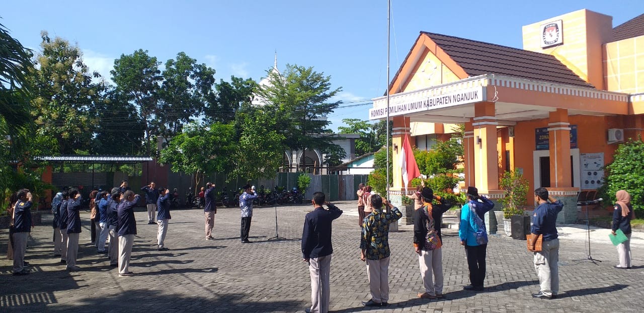 KPU Kab Nganjuk Gelar Upacara Peringatan Hari Sumpah Pemuda Ke-94 Di Halaman Kantor KPU Kab. Nganjuk