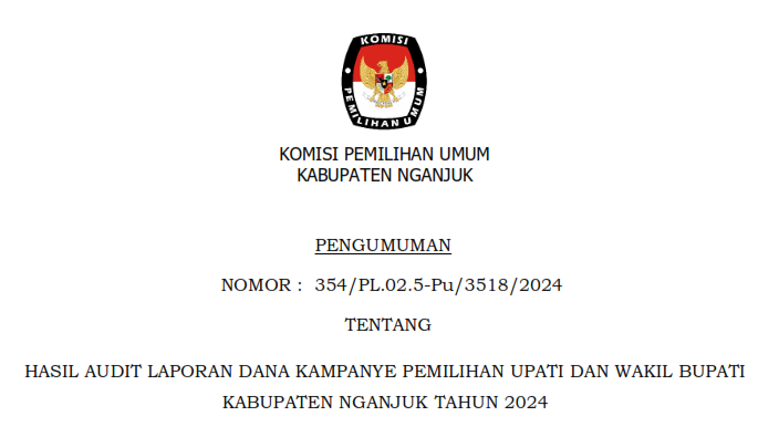 Pengumuman Hasil Audit Laporan Dana Kampanye Pemilihan Bupati dan Wakil Bupati Nganjuk Tahun 2024