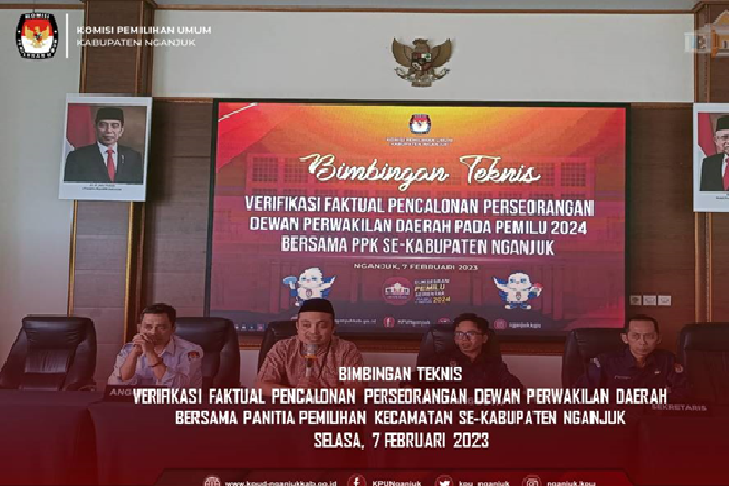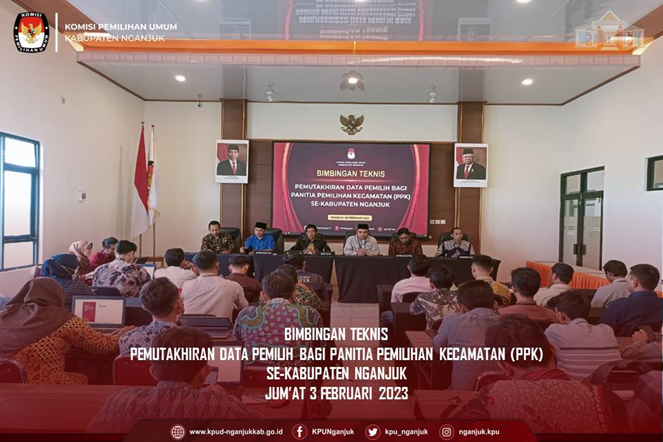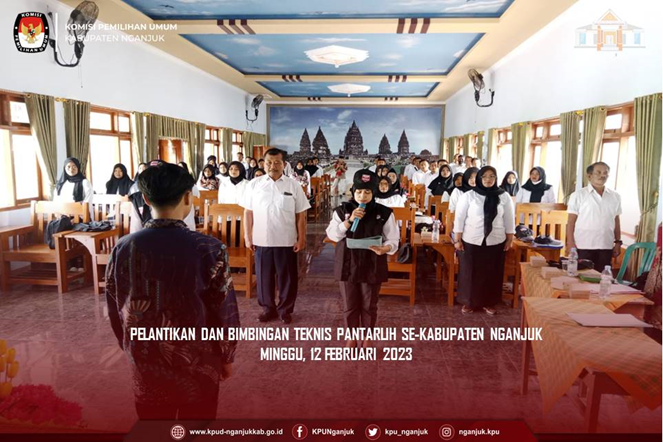 KPU Nganjuk- Berdasarkan Berita Acara Pleno KPU Kabupaten Nganjuk Nomor 34/PP.04.1-BA/3518/2023 Tentang Penggantian Antar Waktu (PAW) Calon Panitia Pemungutan Suara (PPS) Yang mengundurkan diri pada Pemilihan Umum Tahun 2024, KPU Kabupaten Nganjuk Pada Sabtu 11 Februari 2023 melaksanakn Pelantikan Anggota Panitia Pemungutan Suara (PPS).Adapun PPS yang PAW adalah dua orang Desa Pelem Kecamatan Kertosono, 2 orang Desa Mojoagung Kecamatan Kertosono, satu orang Desa Blongko Kecamatan Ngetos dan satu orang Desa Ngetos Kecamatan Ngetos. Pelantikan diawali oleh pembacaan surat keputusan Komisi Pemilihan Umum oleh Kasubag Hukum dan SDM( Anang Subekti) dan dilanjutkan pelaksanan sumpah/janji oleh Ketua KPU Kabupaten Nganjuk (pujiono) bersama Rohaniawan yang disaksikan oleh Anggota KPU Kabupaten Nganjuk dan Ketua Panitia Pemilihan Kecamatan (PPK) Ngetos. Pelantikan diakhiri dengan penandatanganan Pakta Integritas dan Penyerahan Surat Keputusan Komisi Pemilihan Umum oleh Ketua KPU Kabupaten Nganjuk (Pujiono).