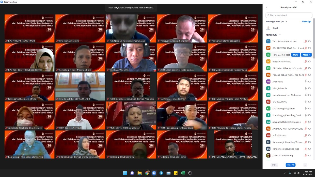 KPU Nganjuk- Komisi Pemilihan Umum (KPU) Kabupaten Nganjuk terus berupaya membenahi dan meningkatkan kualitas Sumber Daya Manusia (SDM) bertujuan untuk mendorong dan peningkatan kualitas penyelenggaran pemilu dalam kehidupan berdemokrasi khususnya di KPU Kabupaten Nganjuk. “Dalam hal peningkatan kualitas SDM KPU Kabupaten Nganjuk melaksanakan kegiatan rutin berupa Peningkatan SDM yang dikemas dalam bentuk Belajar bersama. Dilaksanakan pada hari Kamis 30 Juni 2022 dimulai pukul 09.00 s/d 11.00 WIB di ruang pertemuan KPU Kabupaten Nganjuk Jln. Widas- Begadung Nganjuk. Kegiatan pencerahan/pembelajaran yang disampaikan oleh Anang Subekti selaku Kasubbag Hukum dan SDM dengan tema “Peningkatan Kinerja dan Profesionalisme Pegawai di Lingkungan KPU Kab.Nganjuk”diikuti oleh seluruh ASN baik itu PNS dan PPNPN serta para Komisioner KPU kabupaten Nganjuk. “Tujuan dilaksanakan kegiatan ini guna mengetahui regulasi aturan - aturan sebagai ASN khususnya Pegawai Negeri Sipil di lingkungan KPU Kabupaten Nganjuk. Dalam garis besar bahwa setiap kita melakukan tindakan/ kegiatan perlu adanya suatui aturan/rel /alur dalam melaksanakan suatu tugas atau kegiatan dan tidak semaunya sendiri. Kegiatan ini merupakan salah satu iplementasi kita terhadap aturan - aturan sebagai rambu - rambu dalam bekerja khususnya ASN di satker KPU Kabupaten Nganjuk. Dan hal ini merupakan bentuk dalam pelaksanaan reformasi birokrasi guna tercapainya rencana aksi di KPU Kabupaten Nganjuk. ( Jk )