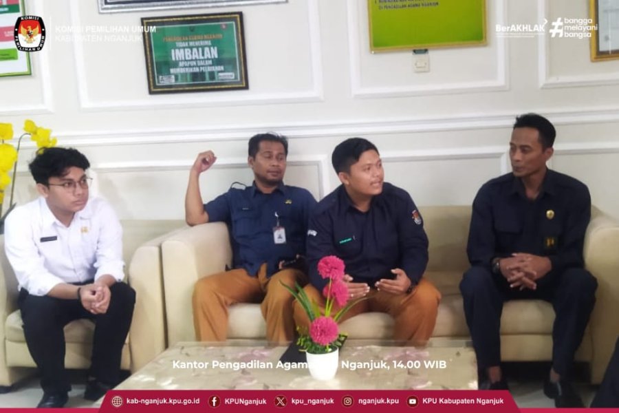 KPU Nganjuk- Komisi Pemilihan Umum (KPU) Kabupaten Nganjuk melakukan koordinasi tentang Pemutakhiran Data Pemilih Berkelanjutan (PDPB) Tahun 2025 dengan Pengadilan Agama setempat, Selasa (24/6/2025). Koordinasi ini lebih spesifik untuk menghimpun data warga yang belum berusia 17 tahun, tetapi mendapatkan Dispensasi Kawin (Diska) dari Pengadilan Agama Nganjuk. Sebab, warga yang sudah kawin meski belum berusia 17 tahun telah memenuhi kriteria sebagai pemilih. Achmad Zam Zami Ketua Divisi Perencanaan Data dan Informasi (Rendatin) KPU Kabupaten Nganjuk menyampaikan pentingnya memperoleh data terkait warga yang pernah atau sedang menjalani pernikahan meski belum berusia 17 tahun. Data tersebut diperlukan untuk kepentingan pemutakhiran sekaligus pemadanan data pemilih agar tidak ada yang kehilangan hak konstitusionalnya. “Kami ingin menjangkau seluruh elemen masyarakat, termasuk mereka yang memperoleh Diska dan telah menikah. Baik masih berstatus menikah maupun sudah bercerai. Informasi dari Pengadilan Agama sangat penting agar data mereka bisa kami singkronkan dengan data dari KPU RI,” ujar Ahzam. Pihak Pengadilan Agama Nganjuk menyatakan akan mendukung kelancaran kegiatan PDPB Tahun 2025. “Kami sangat mendukung koordinasi ini, dan siap memberikan data yang dibutuhkan sesuai kewenangan kami. Kami juga bersedia untuk berkoordinasi setiap triwulan dengan KPU Nganjuk, dimulai pada bulan Juli mendatang,” ungkap Dian Purnaningrum, Panitera Muda Hukum Pengadilan Agama Nganjuk. Kegiatan koordinasi ini juga diikuti jajaran Sekretariat KPU Kabupaten Nganjuk yang terdiri dari M Mirza Sulthoni, Triyono, dan Syahrindra Dzaky. Sementara dari Pengadilan Agama Nganjuk juga dihadiri Fuad, Kasubbag Umum dan Keuangan, bersama Irwan Abd Rahman selaku Kasubbag Kepegawaian, Organisasi, dan Tata Laksana. (Humas KPU Nganjuk)