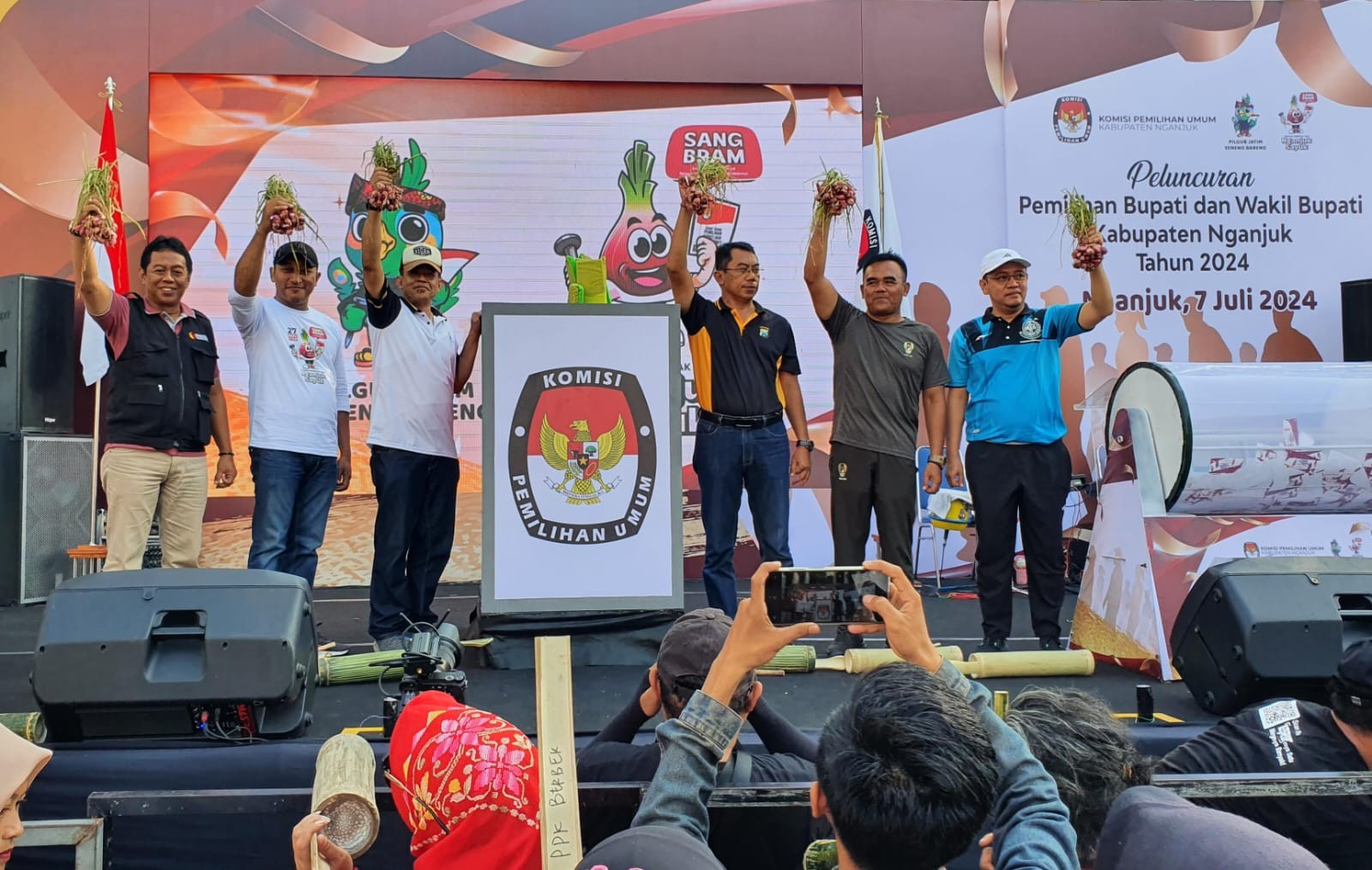 Setelah itu, peluncuran dilaksanakan ditandai dengan prosesi Ketua KPU Nganjuk Bersama Forum Pimpinan Kepala Daerah (Forkopimda) memasukkan bawang merah ke dalam kotak berlogo KPU. Pada saat yang bersamaan, muncul maskot Sang Bram. Beberapa waktu kemudian, Ketua KPU Nganjuk Bersama Forpimda serta ribuan peserta memukul kentongan bambu bersama-sama.