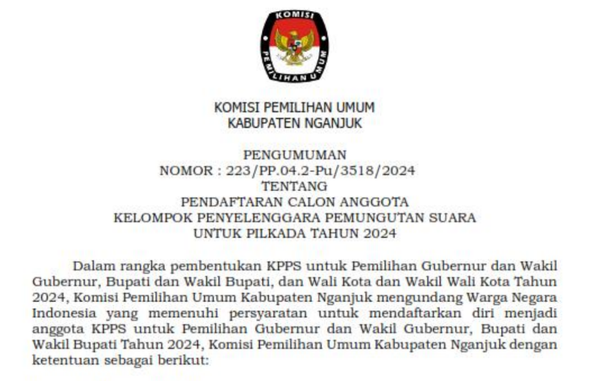 KPU Nganjuk- Bahwa untuk melaksanakan ketentuan: